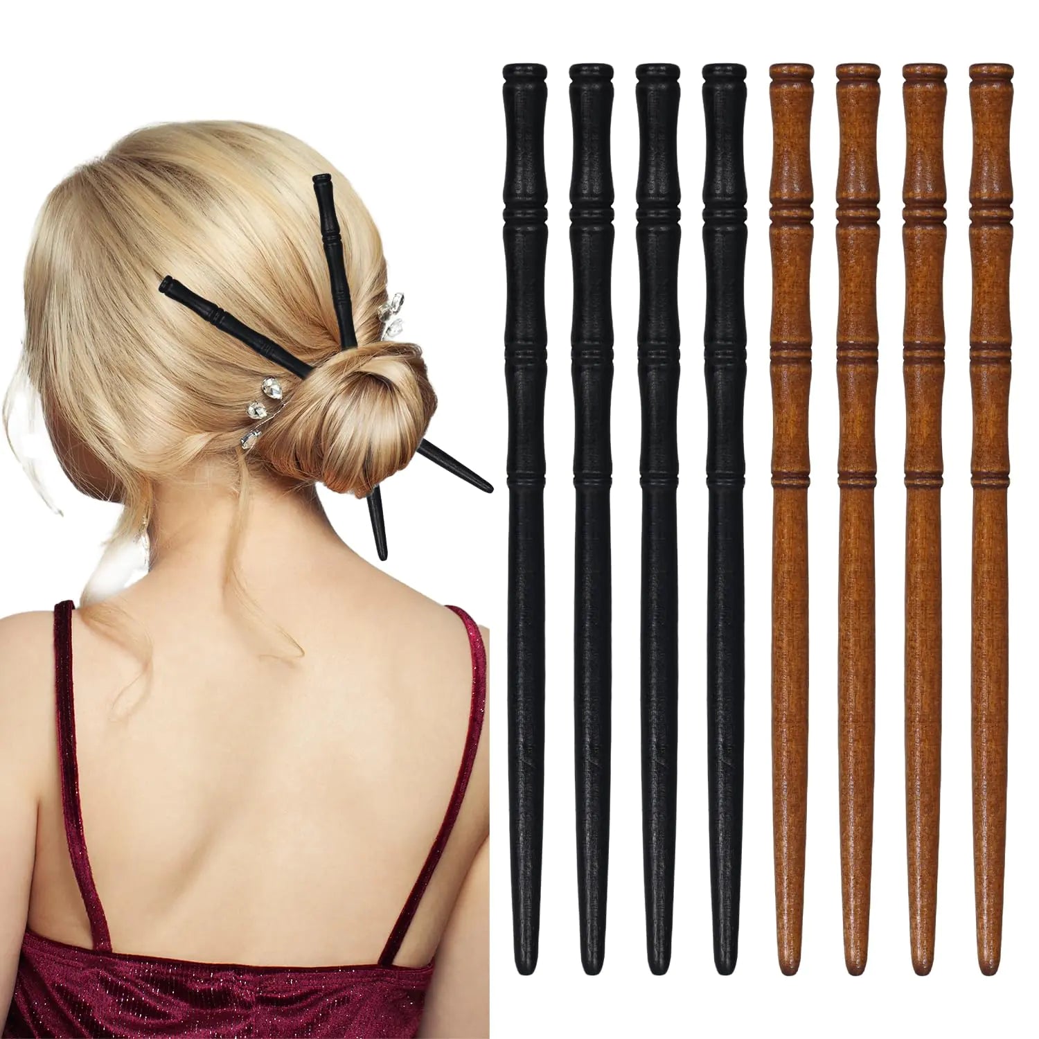 8pcs Chinese Wooden Hair Sticks Retro Hair Chopsticks Bamboo Shape Hair Pin for Buns Long Hair Wood Hairpin Hair Holder Stick for Women Hair Accessories