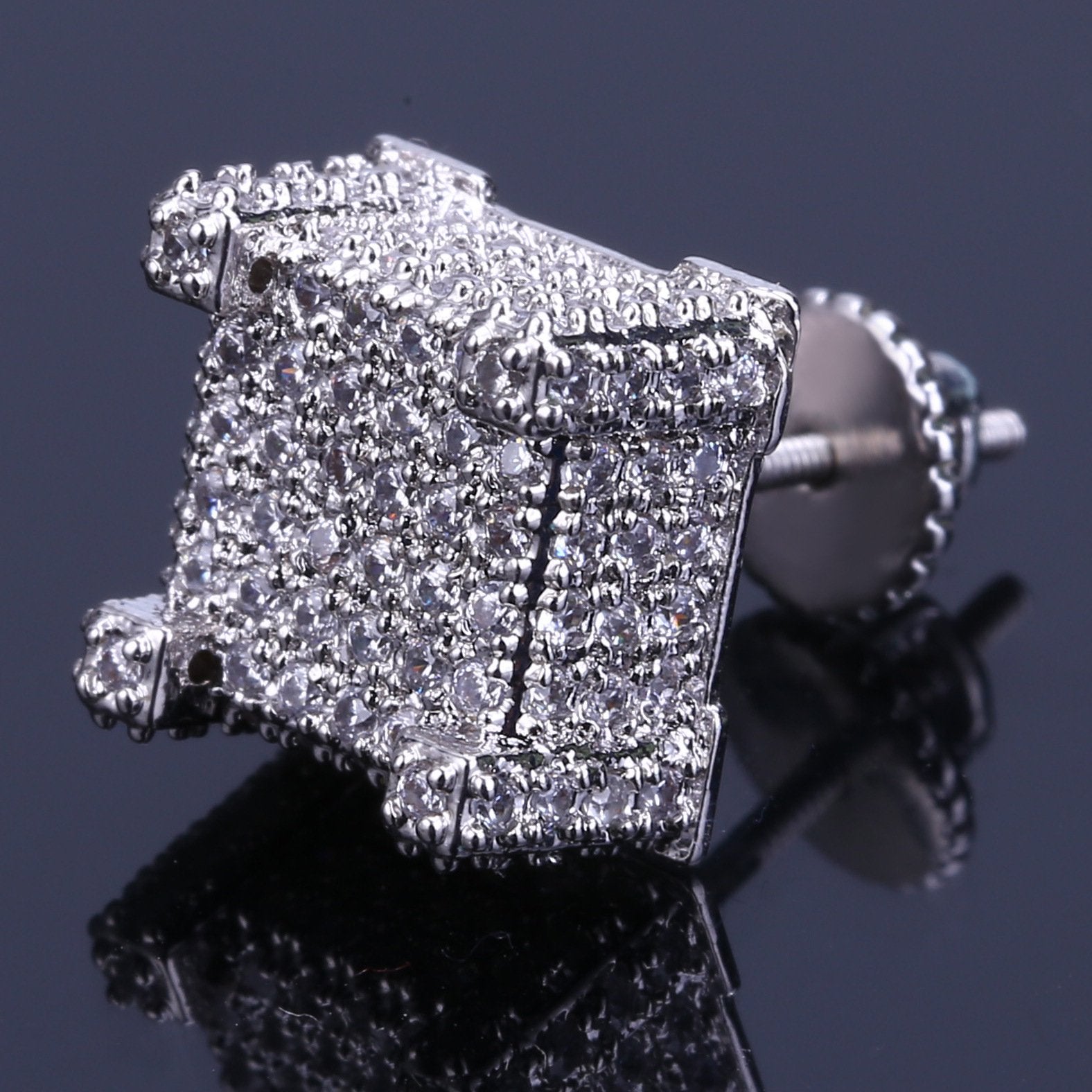 New Bling Bling Earrings Cube Micro Pave CZ Stud Earring Hip Hop Jewelry