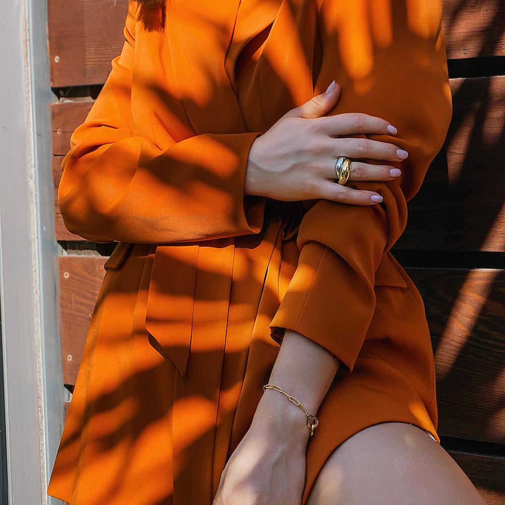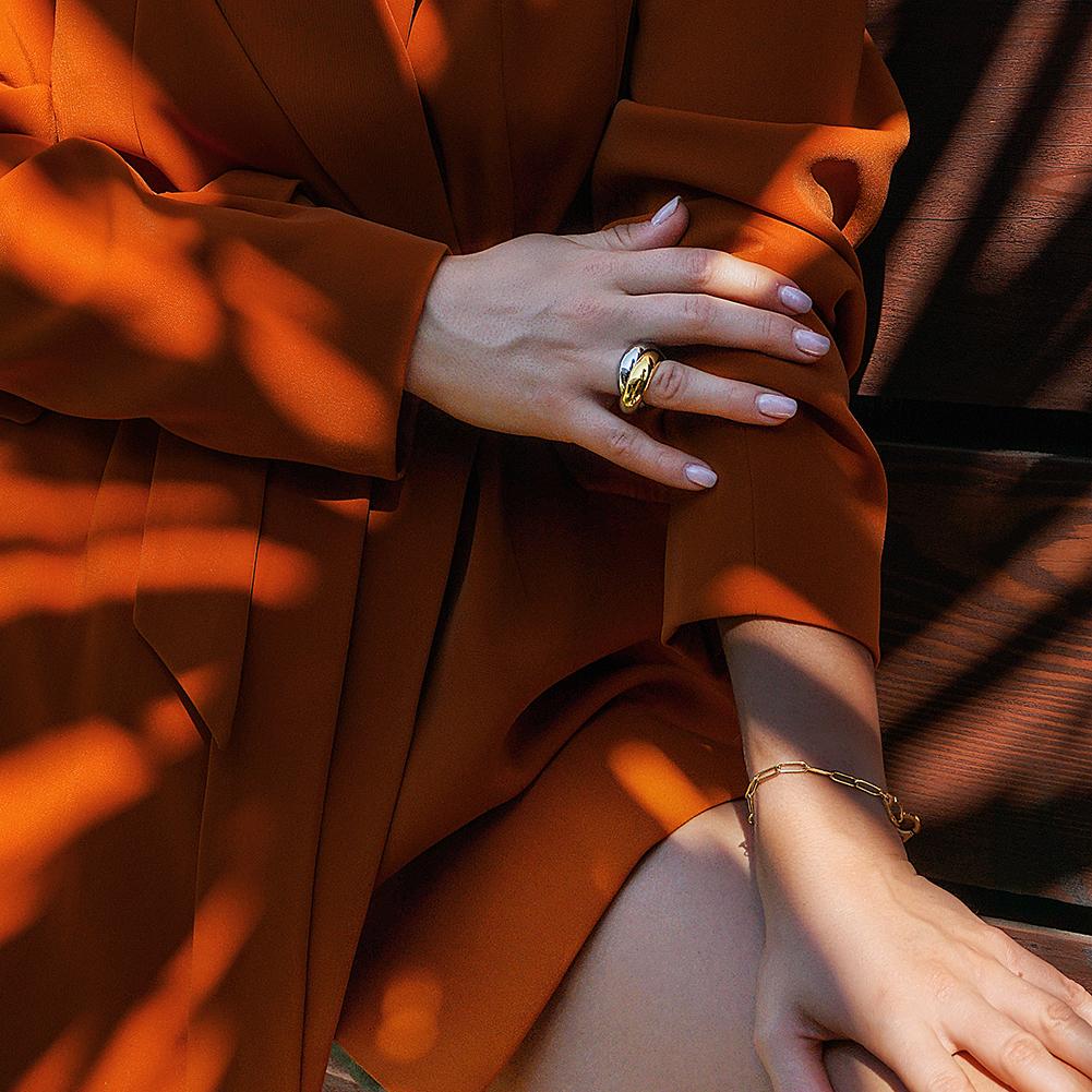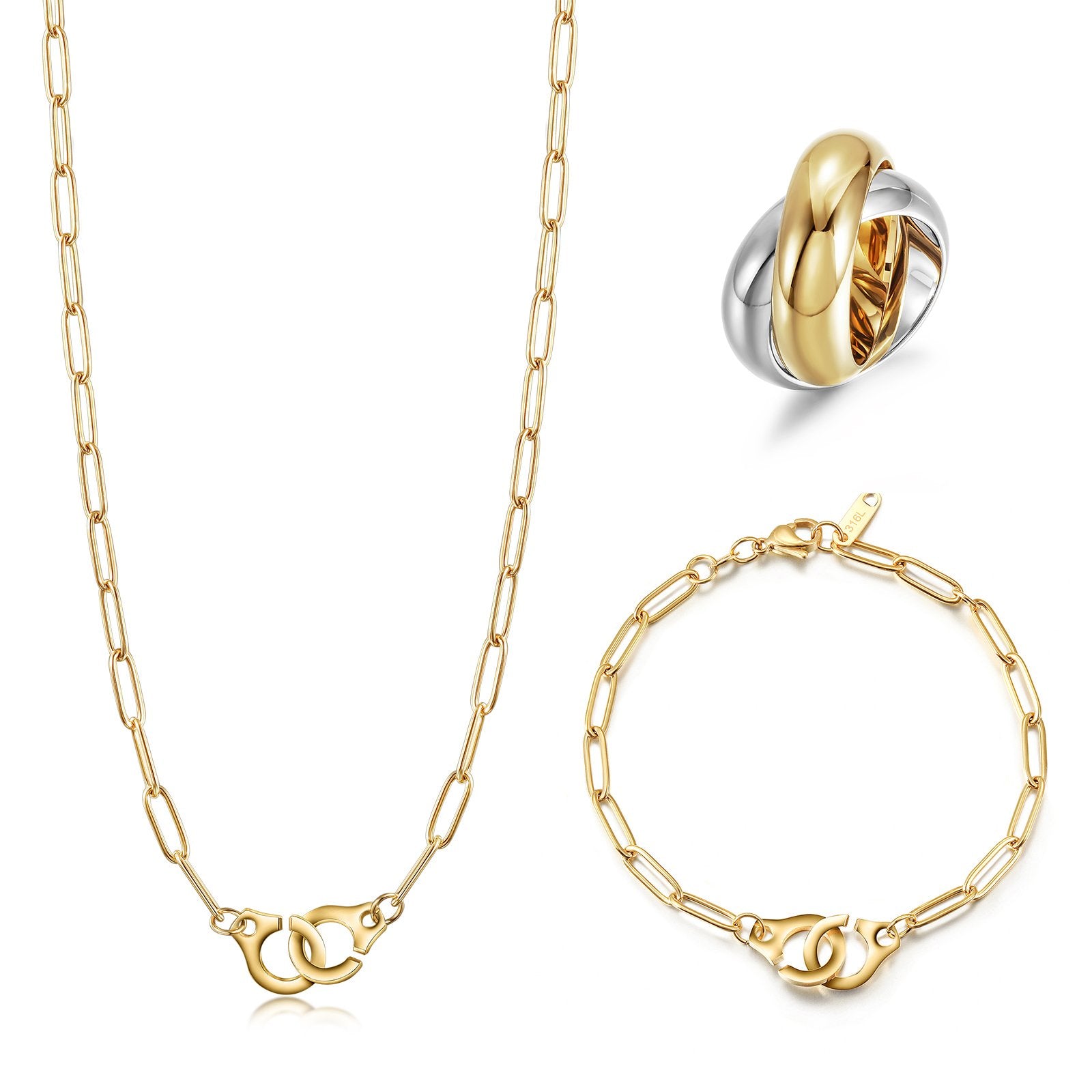 Looking for versatile and timeless pieces for your daily outfit? Here is the simple go-to piece that still makes a statement. The shape of chain links adds a special and modern touch to your everyday outfit. The chain and the matching bracelet also make great combo gifts for your loved ones. The adjustable lengths make perfect pairs with your other gold favorites. The double dome Ring features intermixed and mingled with one another for a look that's both playful and elegant.